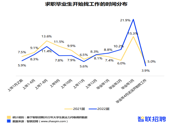 据智联招聘4月26日发布的《2022大学生就业力调研报告》显示,截至4月中旬,46.7%的应届毕业生收到了录用通知,低于2021年的62.8%;有15.4%的应届毕业生签约找到了合适的工作,也低于去年的18.3%。与签约率相比,求职录取率的降幅更显著,从侧面反映出招聘岗位减少,毕业生对工作的选择余地缩小。