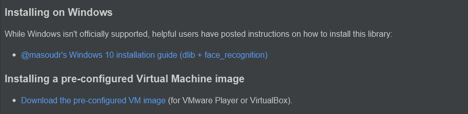 windows虽然不是官方支持,但是也能装,不就是个dlib吗?好的,那就开始装。