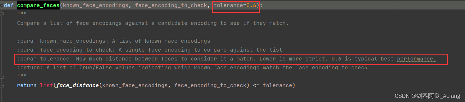 参数tolerance最佳为0.6,越低越严格,所以可以按照自己的需求调整。
