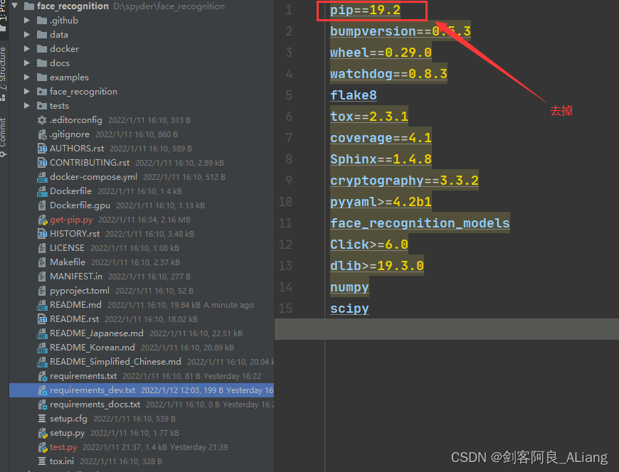 我们直接安装requirements_dev.txt,这里要注意,把pip去掉。