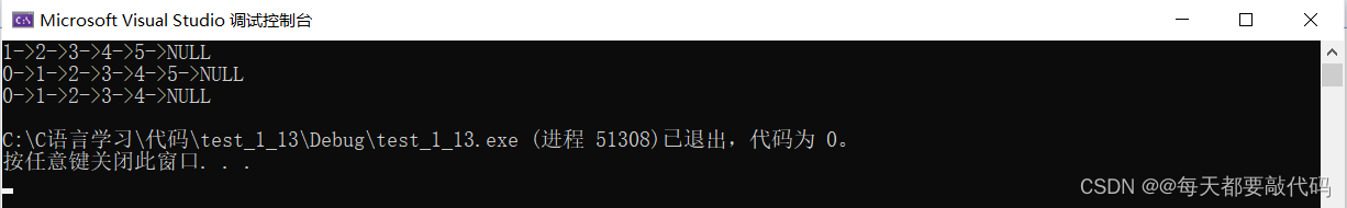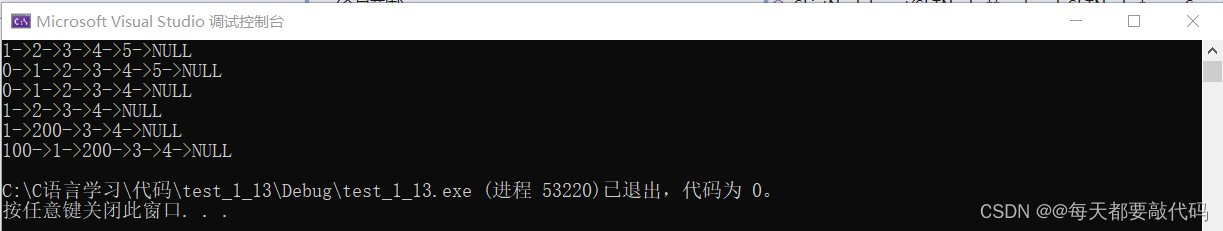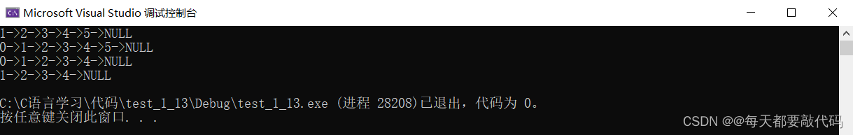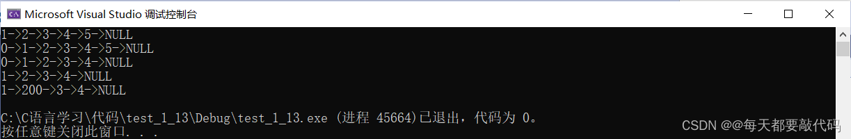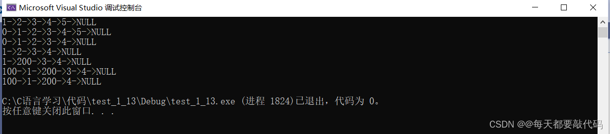 ** 之后我们也可以屏蔽掉前面尾插的函数,直接对空表进行头插,进行验证:**