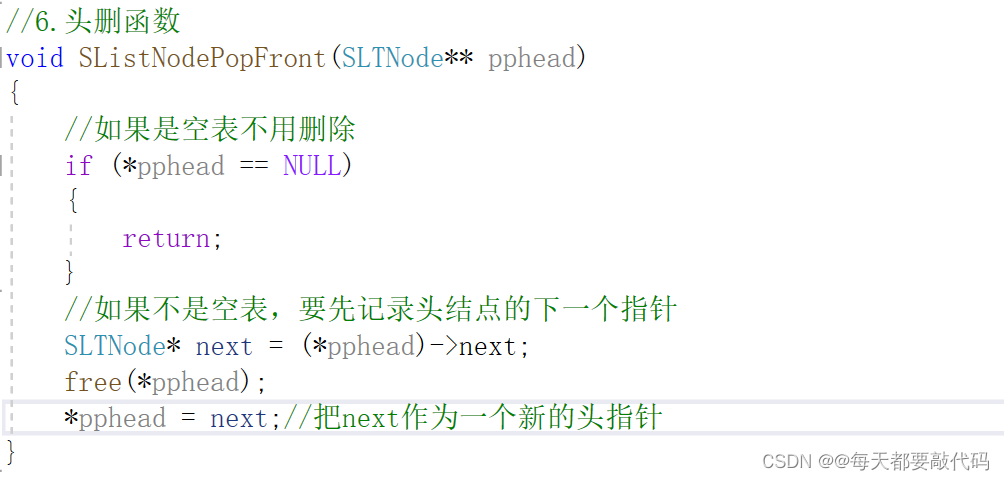 对于头删函数我们也是先考虑普通情况,在考虑特殊情况: