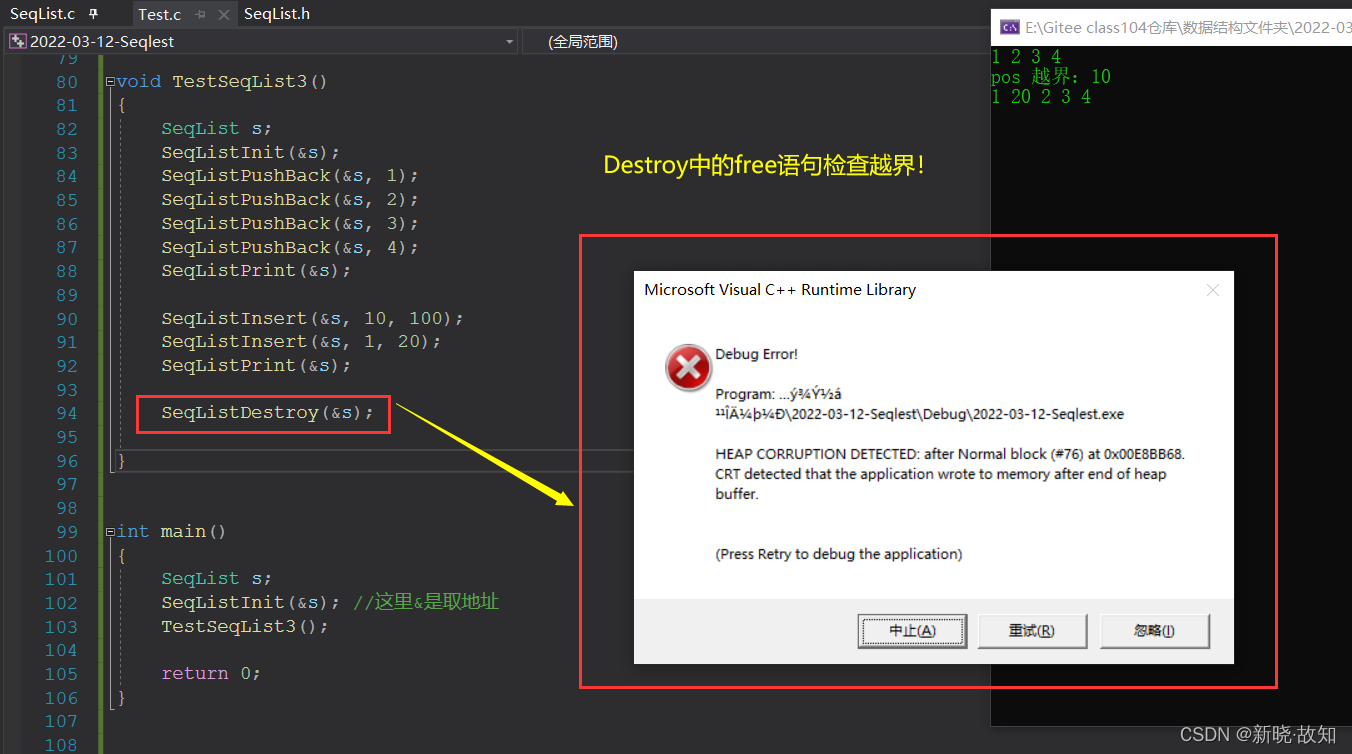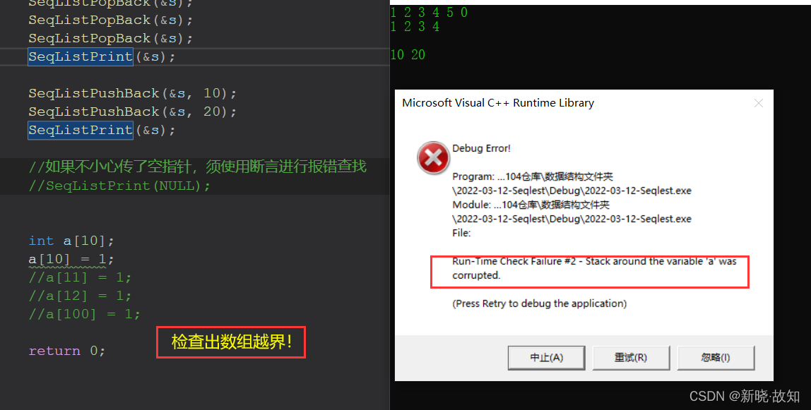 一般情况下,动态开辟的内存,是在free的时候检查越界!