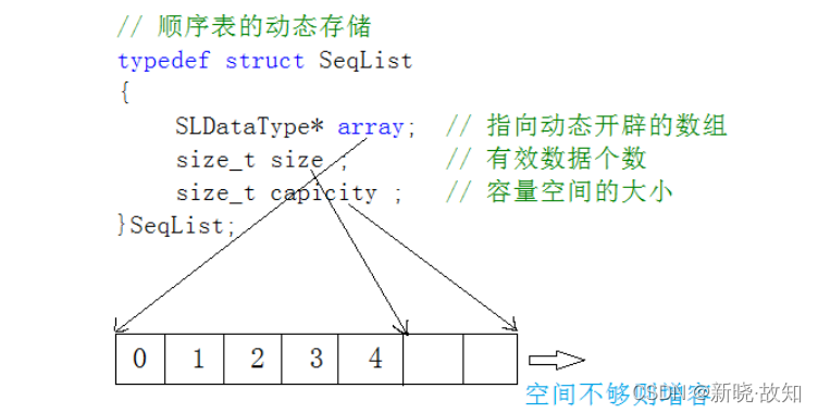 静态顺序表只适用于确定知道需要存多少数据的场景。静态顺序表的定长数组导致N定大了,空间开多了浪费,开少了不够用。所以现实中基本都是使用动态顺序表,根据需要动态的分配空间大小,所以下面我们实现动态顺序表。