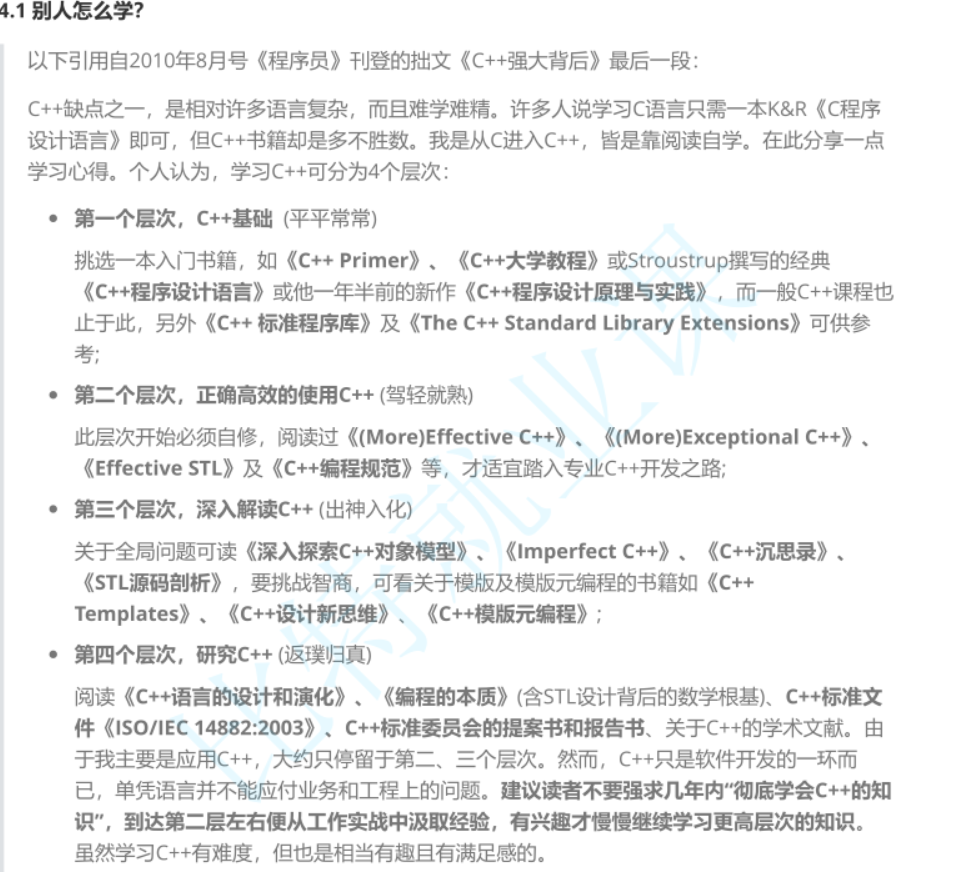 书籍参考:C++Primer(作为语法字典) / Effective C++侯捷(应用经验和坑) / STL源码剖析(库底层、中后期)。
