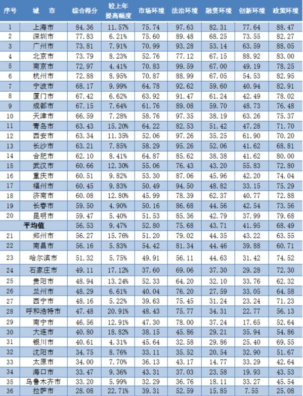 6月9日,工信部下属的中国中小企业发展促进中心发布《2021年度中小企业发展环境评估报告》,选取36个典型城市作为评估对象,对市场环境、法治环境、融资环境、创新环境、政策环境等指标进行评估。