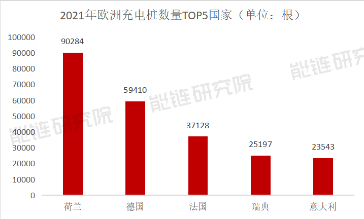根据 ACEA 数据,欧盟有一半的电车充电站仅集中在荷兰(约 9 万个充电桩)和德国(约6万个充电桩),德国、法国和荷兰充电站点总和占欧盟约69%,瑞典、意大利排在第四、第五名。荷兰每1.5公里就会有一个充电桩。