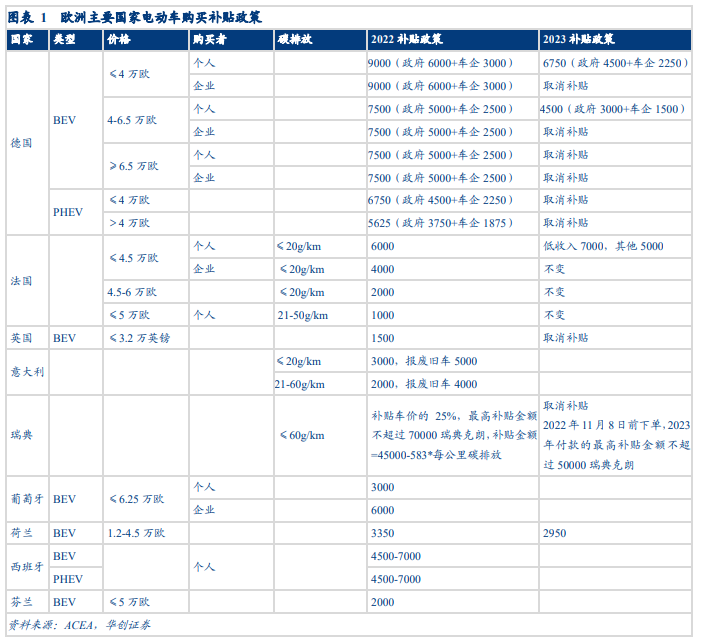 [3]华创证券 《欧洲新能车补贴政策退坡分析》 2022年11月13日