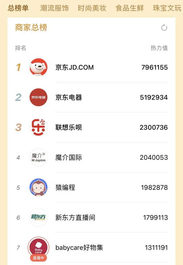随着 618 活动结束,我们发现,尽管有众多品牌参与,但视频号 618 活动中,出最大风头的无疑是京东。618 期间,“京东JD.COM”、“京东电器”长期占据视频号直播商家总榜前列。