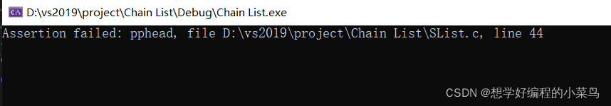 头插:第一步先断言pphead始终不为空,如果我们参数传错了,传的是head且head为NULL,而不是head的地址就会断言报错