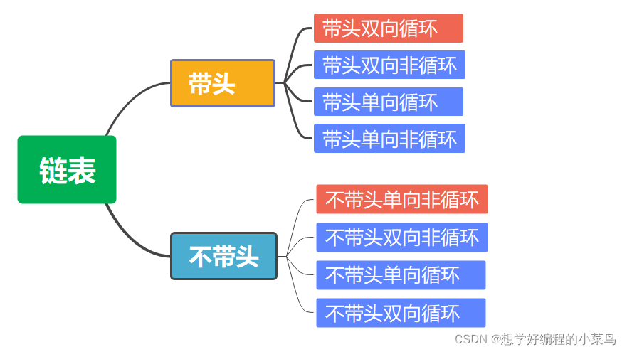 链表的结构多种多样,通过以下情况组合起来有8种结构: