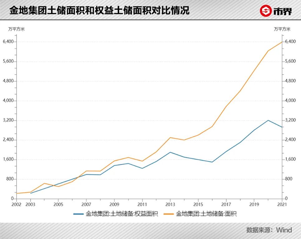 2015年,金地的土地权益投资金额为113亿,2016年为168亿,2017年猛增到473亿,2018年为404亿,2019年为558亿元,2020年为697亿,2021年为523亿。