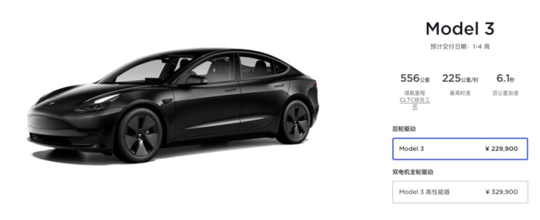 Model 3 后轮驱动版 22.99 万元起售,此前起售价26.59万元,降幅高达3.6万元;