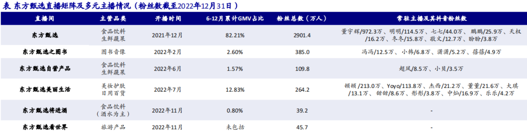 2022年12月28日,推动新东方一路走高的东方甄选,晒出了直播带货一年的成绩单:账号从1个增加到6个,粉丝总量突破3600万,推出自营产品52款,总销量1825万单。而根据招商证券估算,东方甄选2023财年GMV将达90亿元。