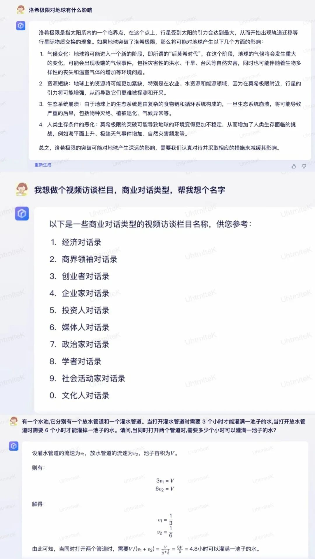 到今日晚间,「光锥智能」拿到文心一言的内测邀请码,在提出多个问题测试之后我们发现,文心一言与New Bing虽然有差距,但整体要比预期更好。比如在为商业访谈类栏目起名、对洛希极限的解释上都十分完整。但同时也存在一些不足,比如在计算“同时抽水和放水”的数学问题时,文心一言就出现了审题错误。
