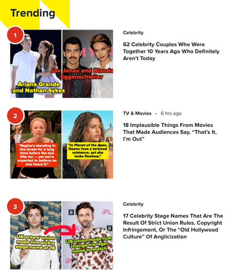 buzzfeed非常擅长做实时热点榜单