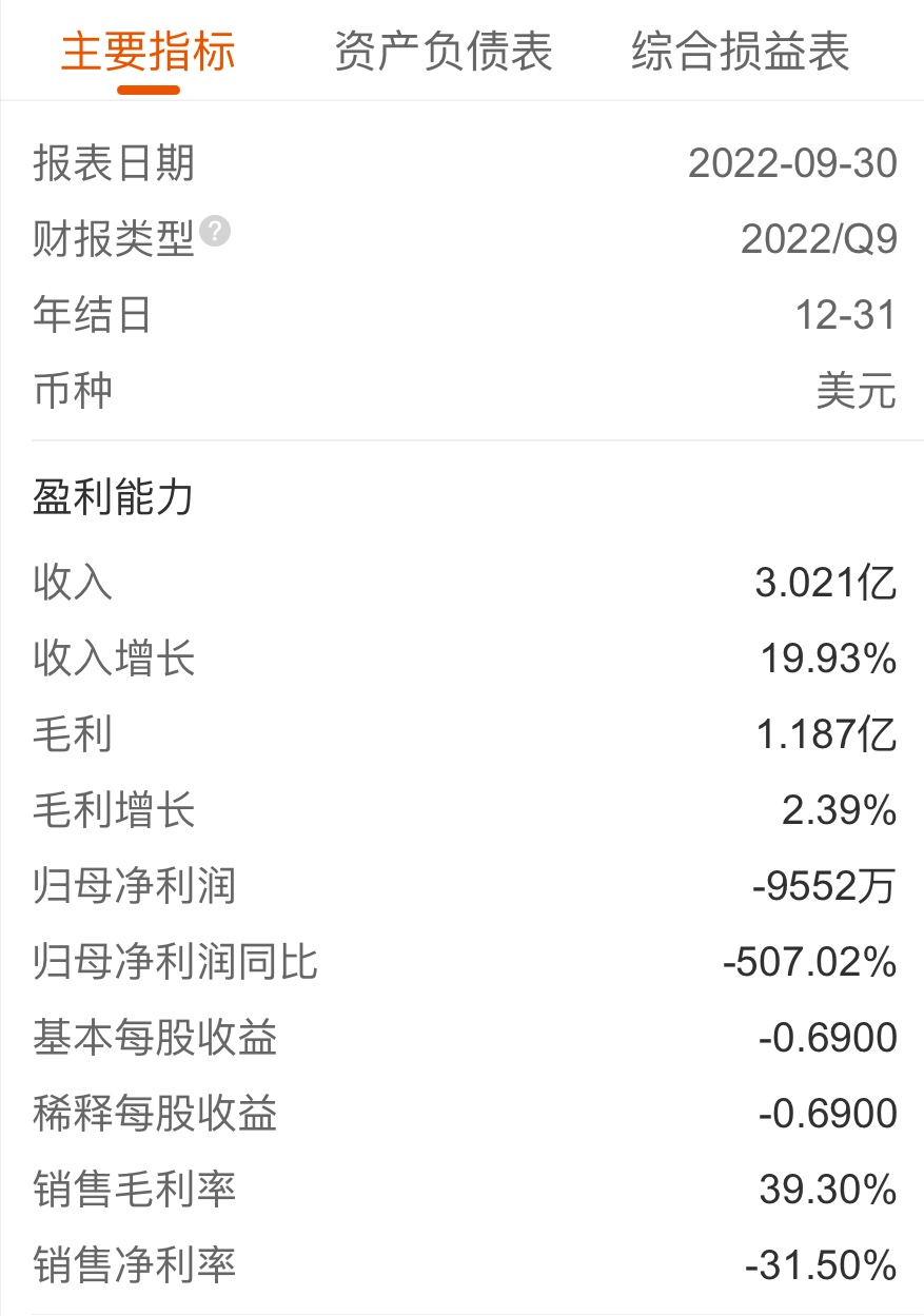 9个月亏近1亿美元,业务亟需提振