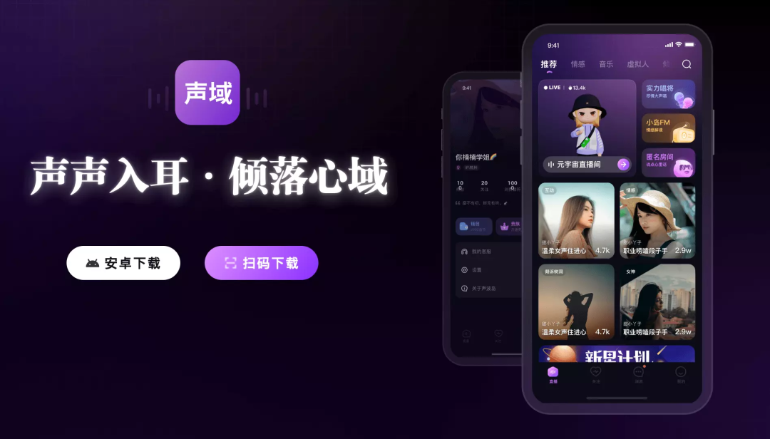 Tech星球独家获悉,网易云音乐近期上线了一款名为“声域”的APP。据悉,“声域”是一款声音交友产品,Slogan是“声声入耳,倾落心域”。