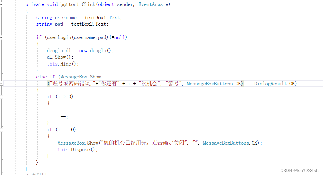 但这样设计登录界面是不严谨的,我们需要添加些条件,使得需要正确的账号和密码方可登录
