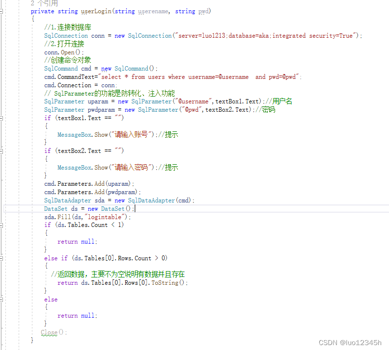 SqlParameter pwdparam = new SqlParameter("@pwd",textBox2.Text);//密码