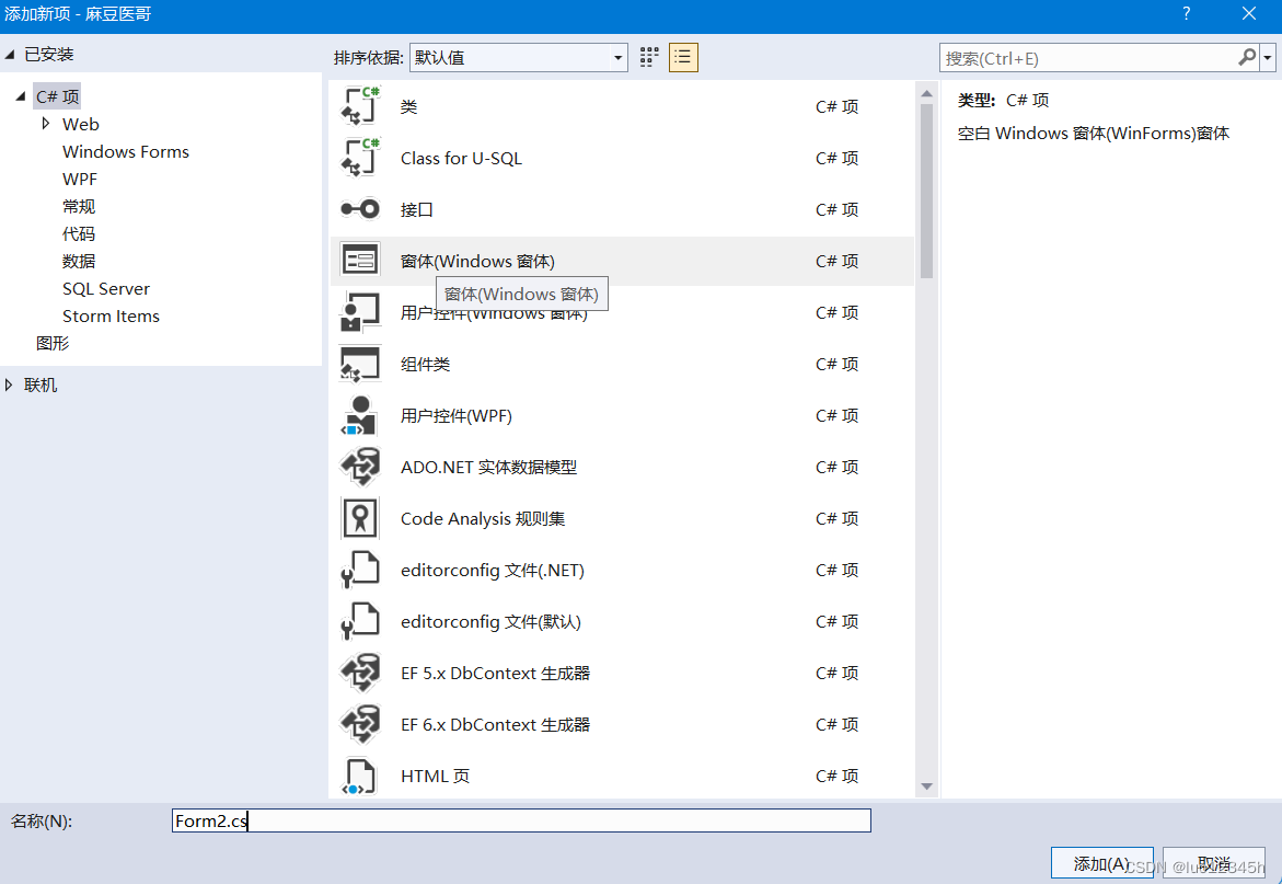 可以产生一个事件,可以在事件里面添加代码,以创建窗口为例