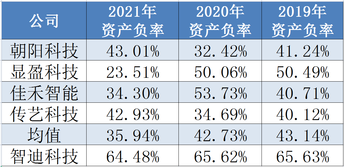 主营业务包含键盘、鼠标等产品或类似消费电子产品的公司近年资产负债率一览,数据:Choice金融终端