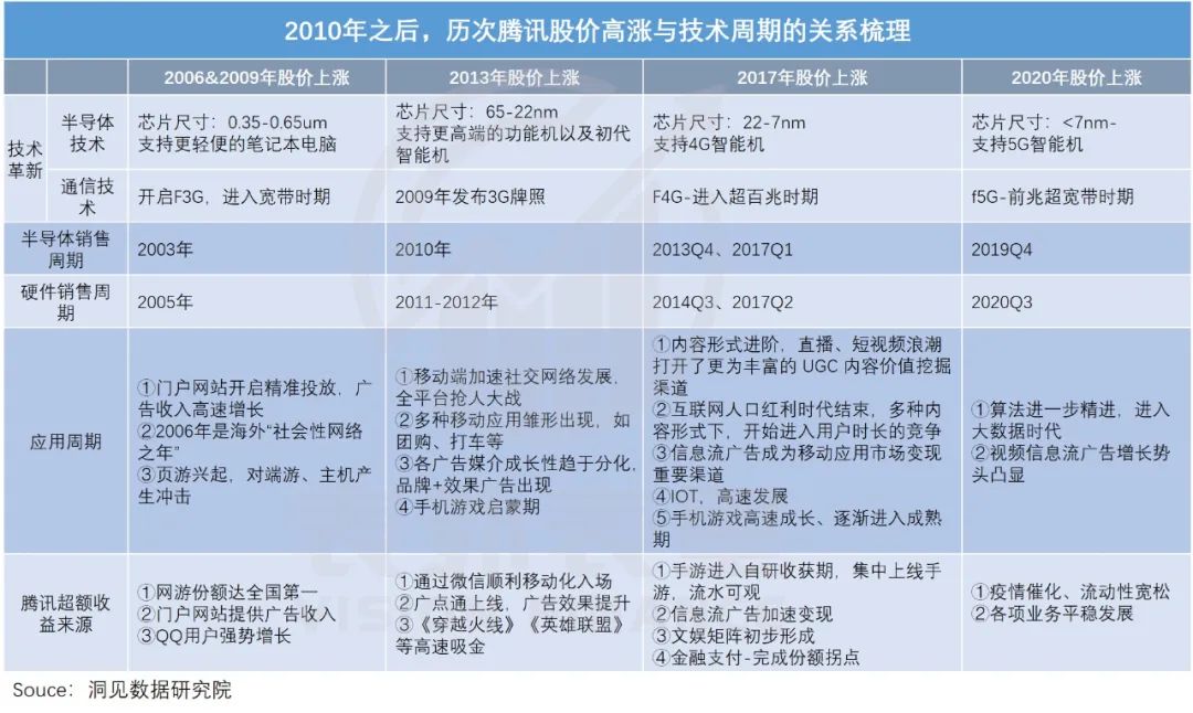 也就是说,在2006&2009半导体销量周期里,腾讯几乎踩准了技术迭代“应用周期”的绝大部分风口,拿到了多个领域的前列份额。