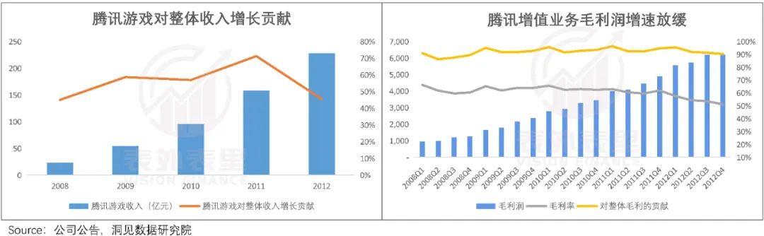 镜头先切回到2009超额收益期,数据显示,截止2009年,腾讯游戏业务对整体收入增长贡献达59%;对整体毛利贡献,2009Q1达到95%。