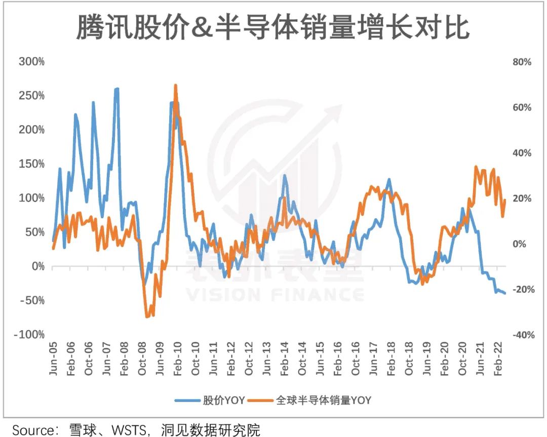 腾讯的历次超额收益,与半导体销量趋势,在同比数据上惊人地一致。