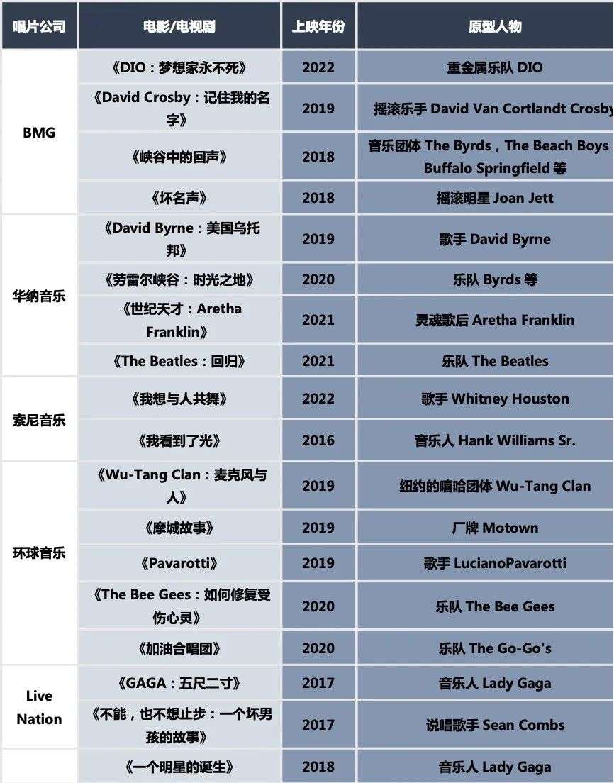 自Queen乐队的音乐传记片《波西米亚狂想曲》在2018年获得的成功,不仅好莱坞开始将音乐传记电影/传记纪录片看作新的金矿,音乐行业也开始重视这门有利唱片销量和版权价值的新生意。
