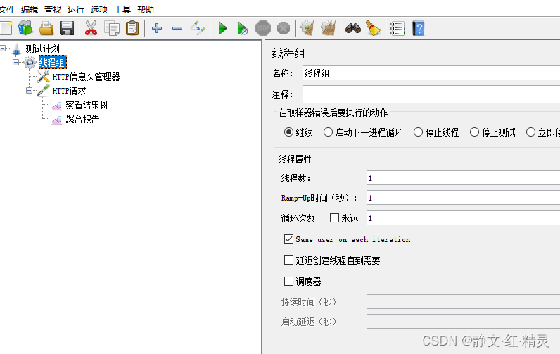 启动jmeter.bat,在jmeter客户但上编写脚本(验证阶段,只取一个线程数)