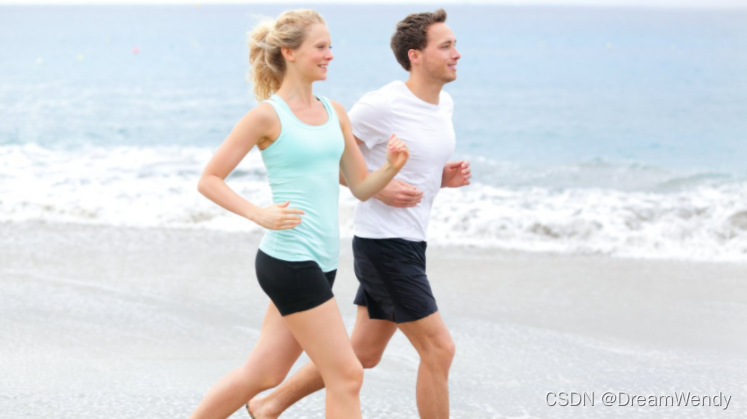 我们人类能够理解和描述图像中的场景。我们眼睛可以检测到图片里有两个人,且一男一女,他们在海边。除了这些基本信息,我们还能够看出图像中看到,女生穿着浅绿色衣服,男生穿的白色T恤,并且他们两都穿着黑色运动短裤,在沙滩上跑步。我们还可以理性地推断出图中人物是外国人,女生的头发是金色,男生的头发是褐色。我们从材质与纹理方面,还能描述出男生的裤子相较于女生的裤子比较宽松。