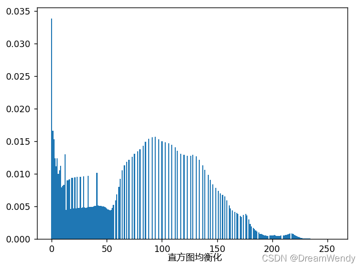 把原始图像的灰度直⽅图从⽐较集中的某个灰度区间变成在全部灰度范围内的均匀分布的技术。直⽅图均衡化能起到增强图像对⽐度的作⽤。