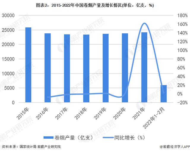 对于企业来说,上市后业绩翻倍并不是什么新鲜事。但在近几年来,我国的卷烟行业近乎原地踏步。2016年,我国卷烟产量为23825.8亿支,2021年为24182.4亿支,只微增1.5%。