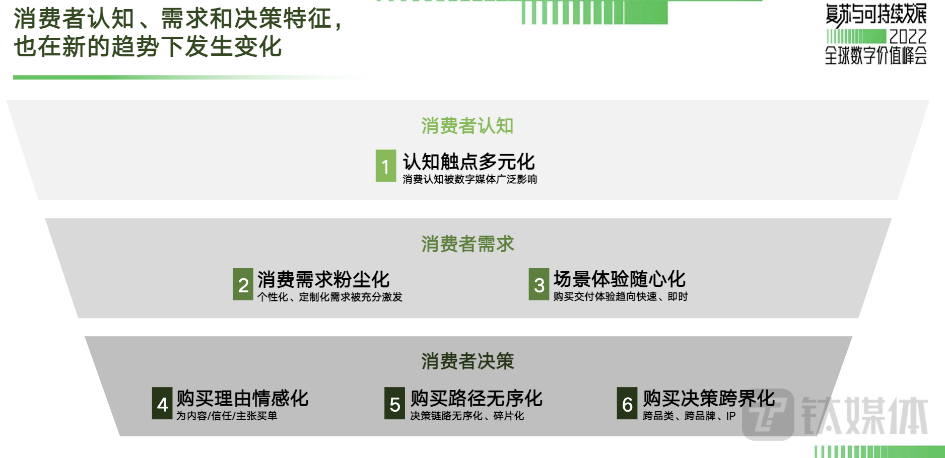 言归正传,疫情给我们带来这么大的变化,数字经济轰轰烈烈走到今天,消费者认知在几方面也发生着重大变化: