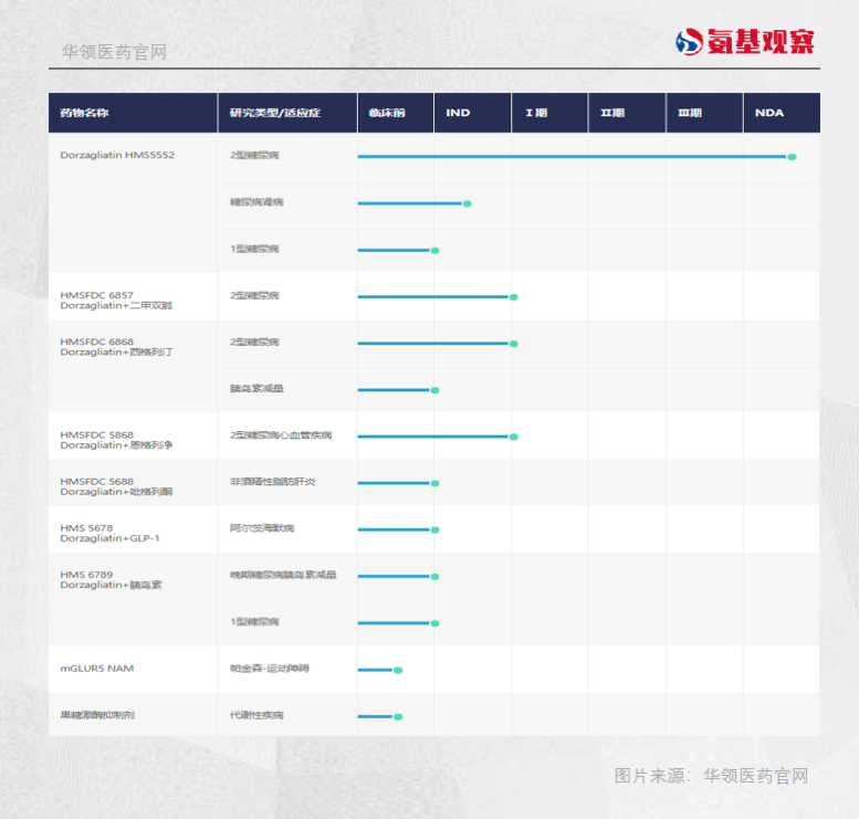 在公司管线中,除了处于临床前期果糖激酶抑制剂和mGLUR5 NAM,其余都是与多格列艾汀片相关的研究。可以说,华领医药几乎将全副身家都ALL IN 在了多格列艾汀片药物上。