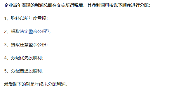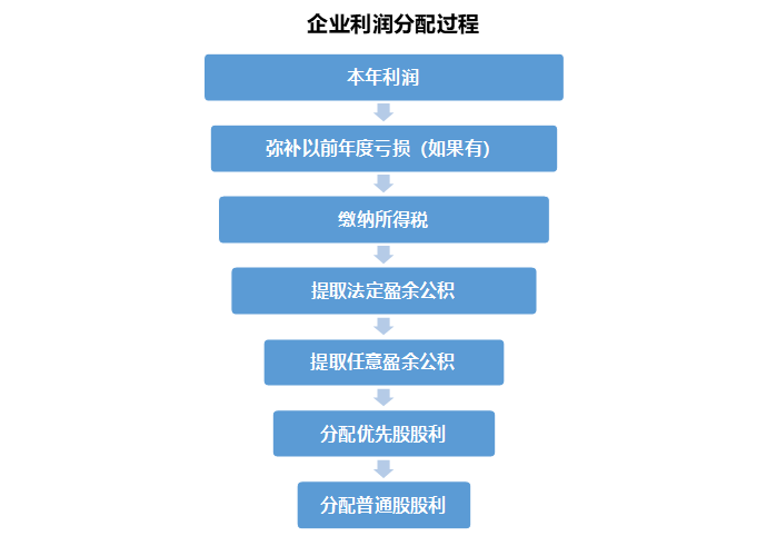 企业利润分配从本年利润开始。如果以前年度有亏损,本年利润可以在弥补以前年度的亏损之后,再缴纳所得税。随后按照提取法定盈余公积、任意盈余公积、分配优先股股利、分配普通股股利的顺序走下来,剩下的就是本年度“未分配利润”科目的增加数。