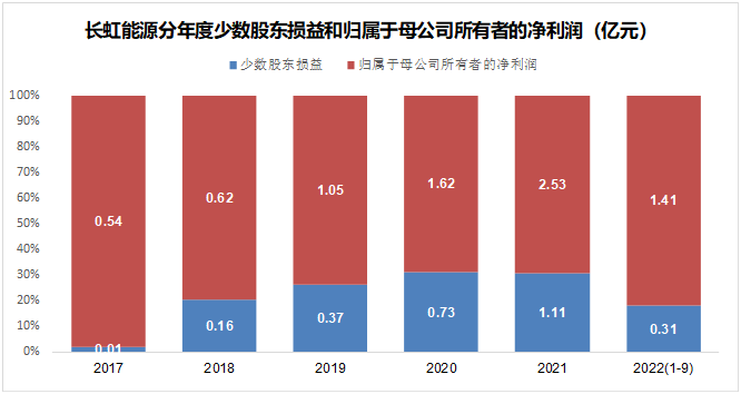 比如北交所上市公司长虹能源。2021年归属于母公司所有者的净利润2.53亿,但少数股东损益足足有1.11亿。这部分少数股东权益来自于公司的利润奶牛控股合营公司长虹三杰,几个高管持有长虹三杰33.17%的股权,上市公司希望通过定增形式将上述股权收购,只是目前推进不及预期。