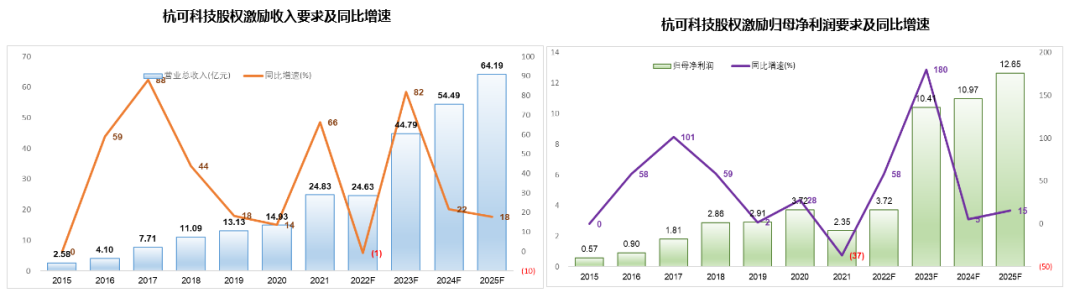 上图是杭可科技2022年股权激励的业绩考核要求,看上去要求蛮高,比如最高要求收入430%的增速。