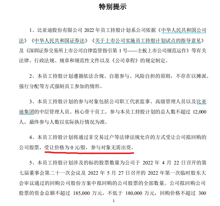 上市公司奖励基金的例子就是比亚迪,如上图,二级市场投入18亿人民币购买股份送给管理层。