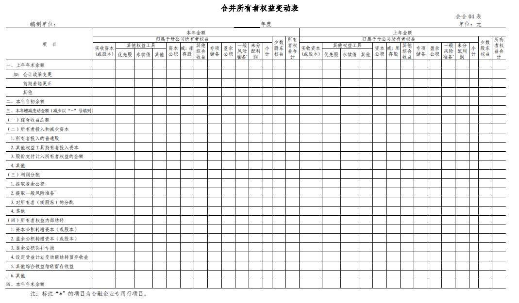 在现行有效的财政部《合并财务报表格式(2019版)》中,有我们常见的三张表,利润表、资产负债表和现金流量表,除了这三个表之外,还有上面的这个所有者权益变动表,总共四张表,只不过这是最后一张。