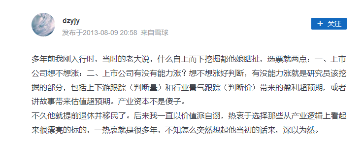 在分析一家上市公司的时候,行业的东西我们可以翻行业报告,而且公司的收入成本利润这些三张表也能窥豹一斑,相互印证。唯一困扰我们的是,公司的实控人、主要股权投资者以及相关的管理层,他们现在在想什么,我们又该怎么预测他们的行为?