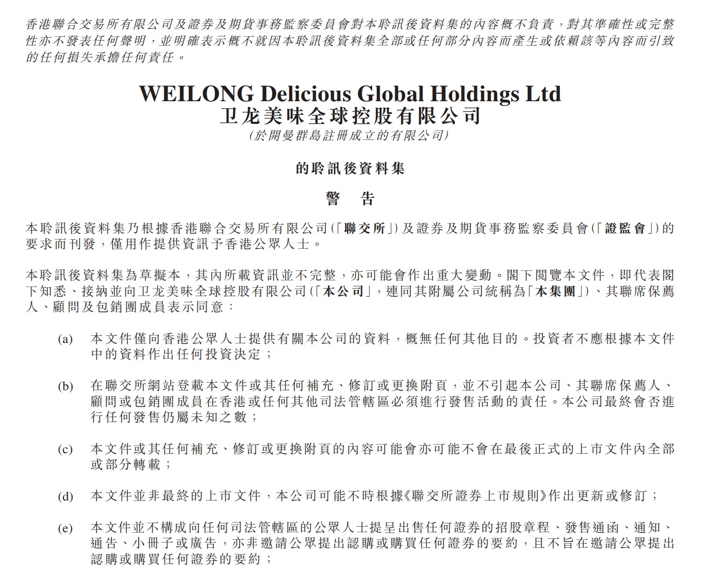 6月27日,港交所文件显示,卫龙通过港交所上市聆讯,摩根士丹利、中金公司和瑞银集团为联席保荐人。