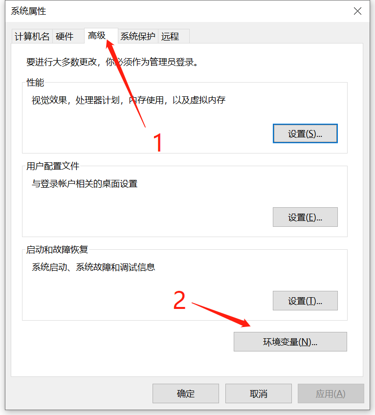 在弹出的系统属性弹框中,选择【高级】选项卡,然后点击【环境变量】(如下图所示)