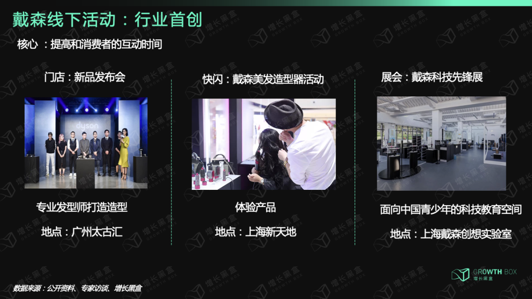 - 线下:与消费者****深度交互,以品带效。无论是路演、专业造型社区,还是降楼层,戴森的品牌心经就是注重与消费者的沉浸式深度沟通,别无其他。