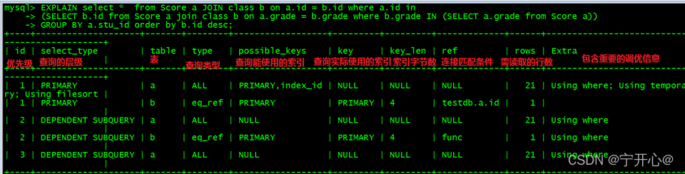 key_len 表示索引中使用的字节数,可计算查询中使用的索引的长度