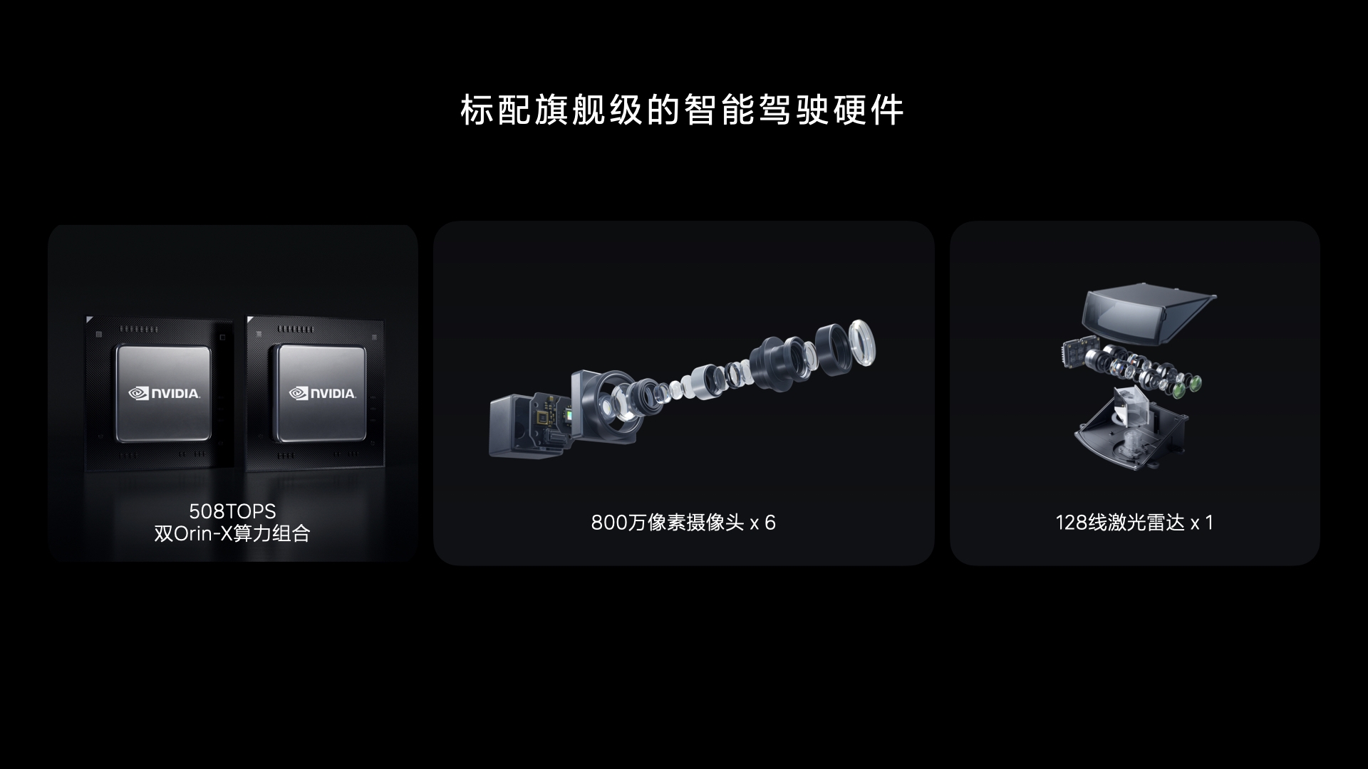从硬件来看,理想L9搭载了双英伟达Orin-X芯片,算力达到了508TOPS;禾赛科技提供的AT128激光雷达则为L9提供独立的安全冗余。或许从配置单上有人会发现理想ONE的5颗角毫米波雷达只剩下了一颗前向的毫米波雷达,但6枚800万像素摄像头与这颗激光雷达的组合似乎让理性走上了特斯拉的纯视觉解决方案之路。