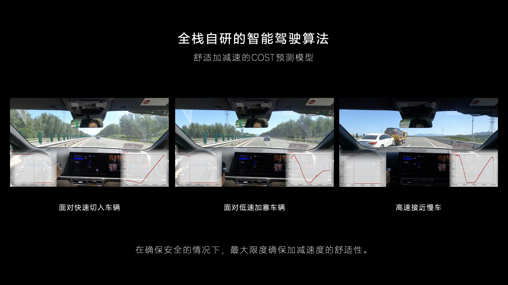 我之所以此前不常使用智能辅助驾驶的主要原因在于系统只能在邻近车道的车辆做出加塞动作时才做出反应,无法去提前预判它的加塞意愿,所以当做出反应时的减速动作难免制动过猛,车上的乘客表示难以接受。理想L9针对加塞这种高频场景引入了COST预测模型,能够在确保安全的前提下最大限度保证加减速度的舒适性。当相邻车道的车辆快速切入本方车道时,L9只会轻微减速,而非像理想ONE一样大力制动以保证安全。当低速状态下邻近车道的车辆试图加塞时,L9会以略大的力度缓和制动,依旧不会让车内乘员感到不适。