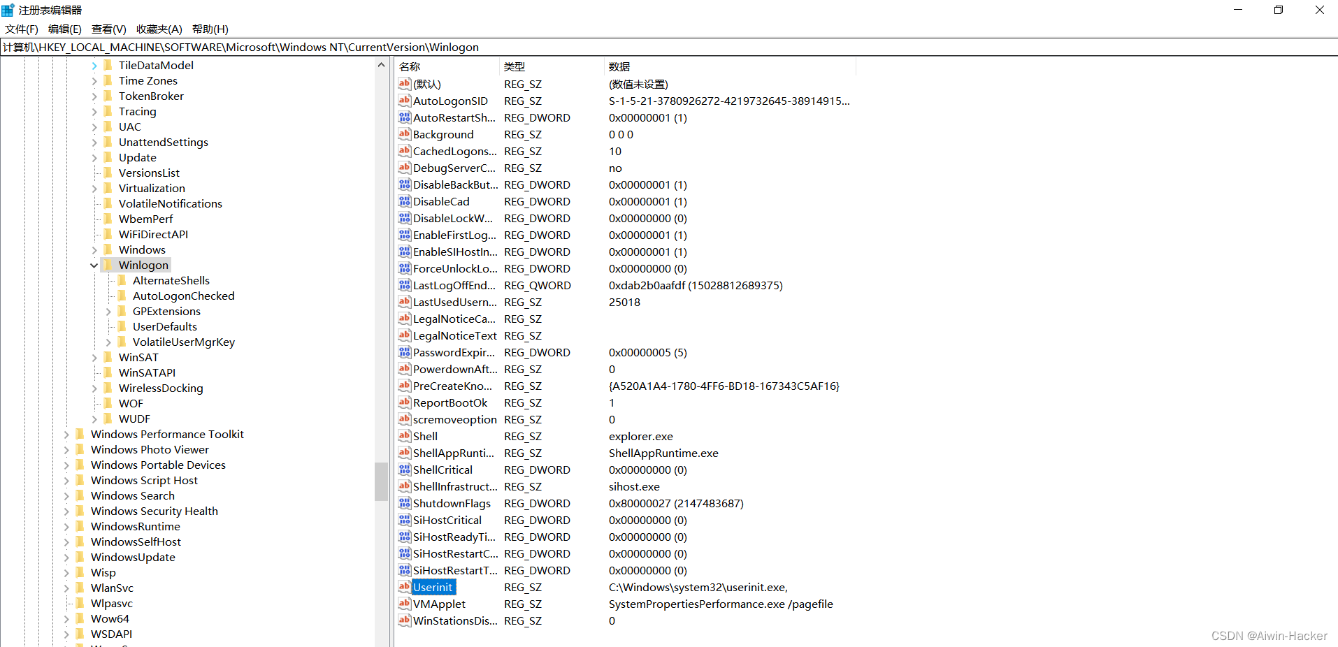 计算机\HKEY_LOCAL_MACHINE\SOFTWARE\Microsoft\Windows NT\CurrentVersion\Winlogon