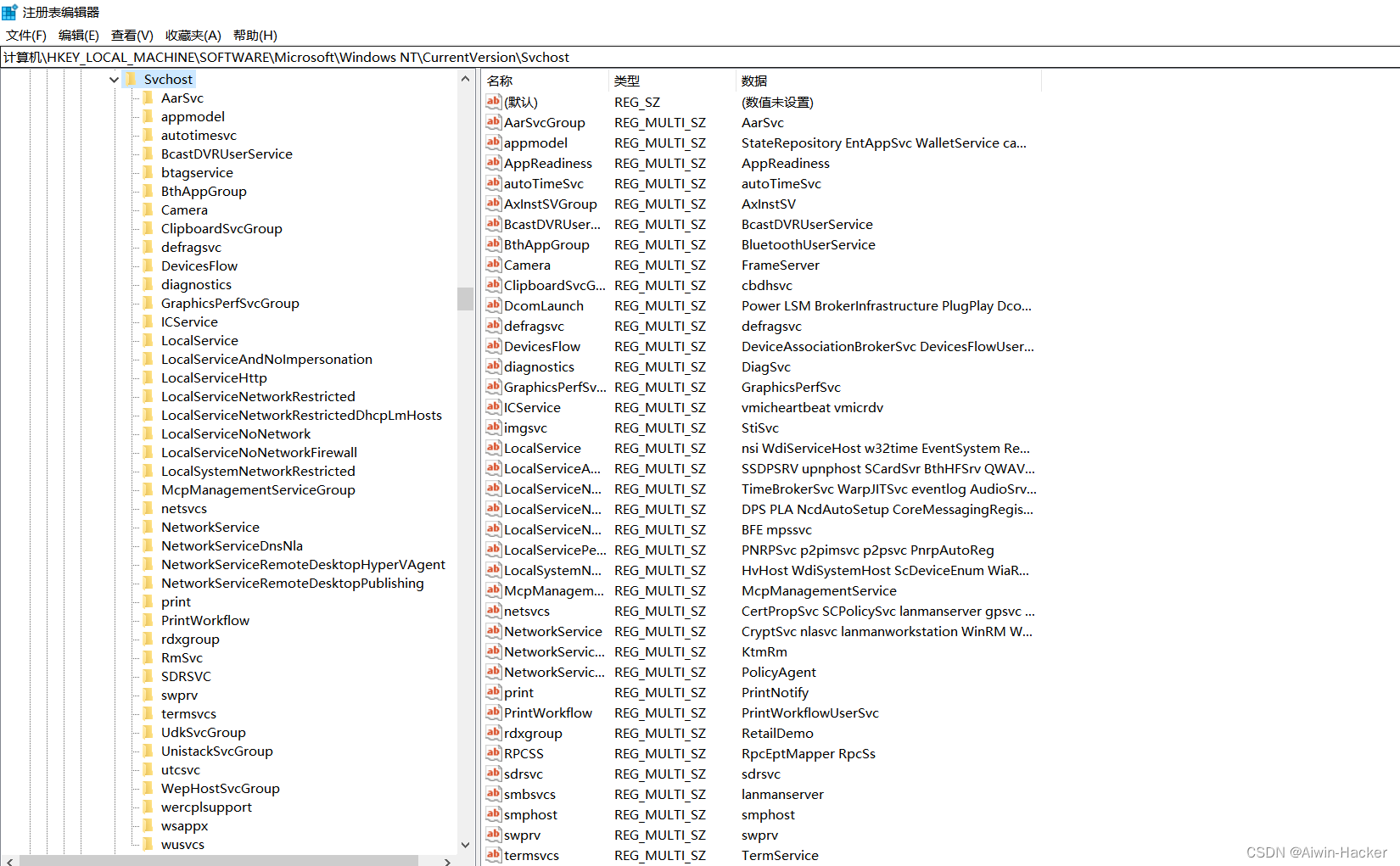 scvhost注册表中存储着svchost.exe的服务分组,要加载的服务需要添加进入里面